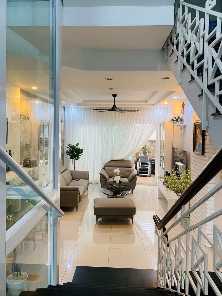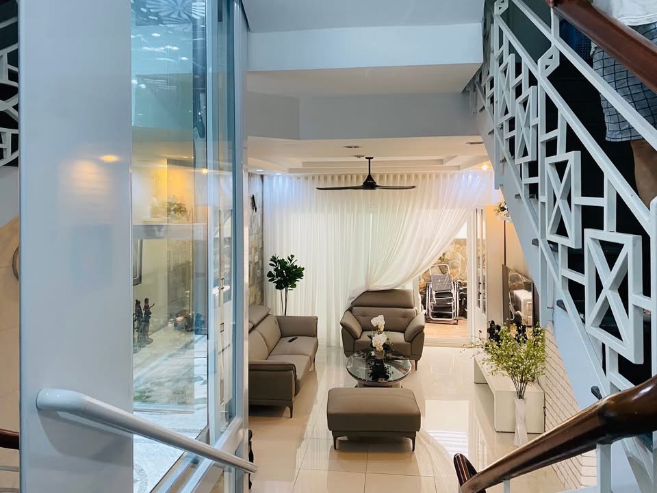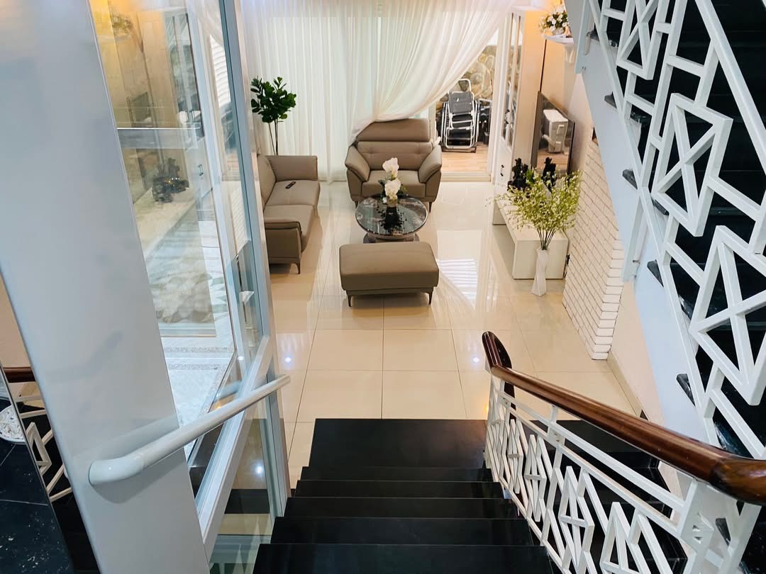Từng chi tiết từ cửa, vách kính, sàn hoa văn đến hệ thống nút bấm đều được lắp đặt tỉ mỉ, mang lại sự tiện nghi và đẳng cấp cho ngôi nhà.