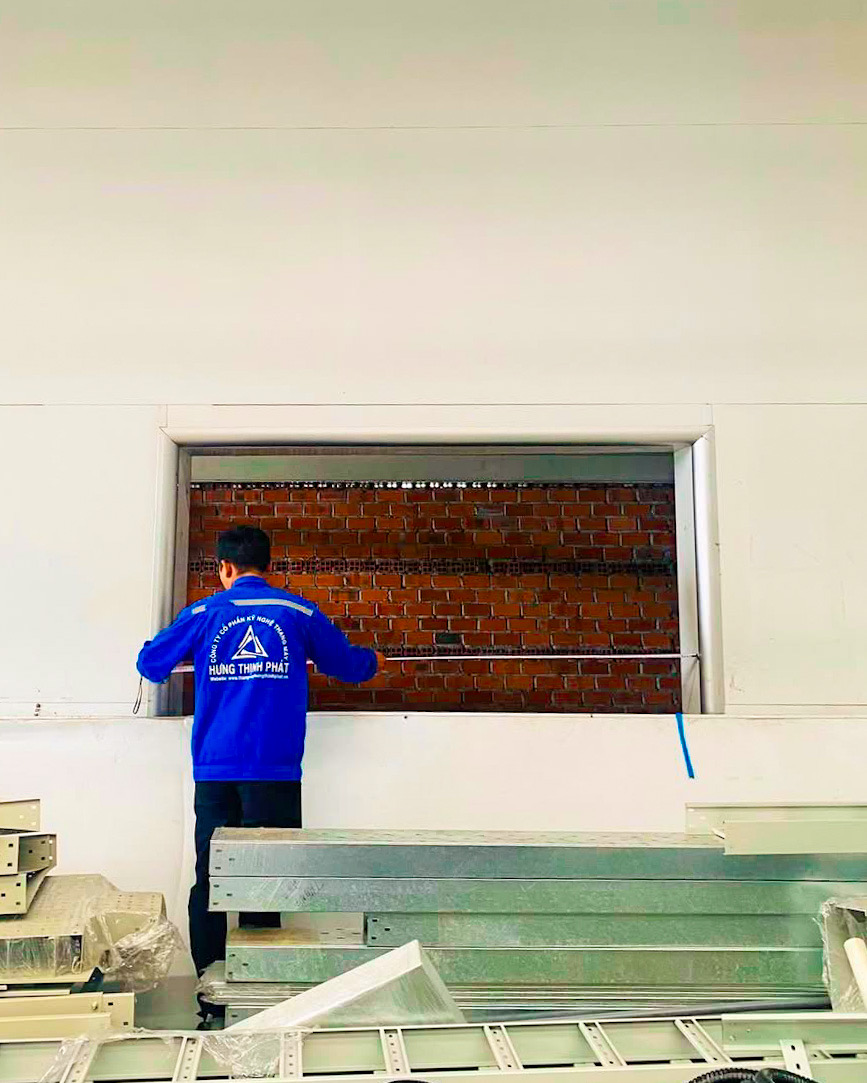 Ngay từ giai đoạn khảo sát thực tế, đội ngũ kỹ sư của Hưng Thịnh Phát đã trực tiếp làm việc tại công trình, đánh giá chi tiết các yếu tố: kết cấu nhà xưởng, lưu lượng vận chuyển, đặc thù hàng hóa, tần suất sử dụng và yêu cầu an toàn.