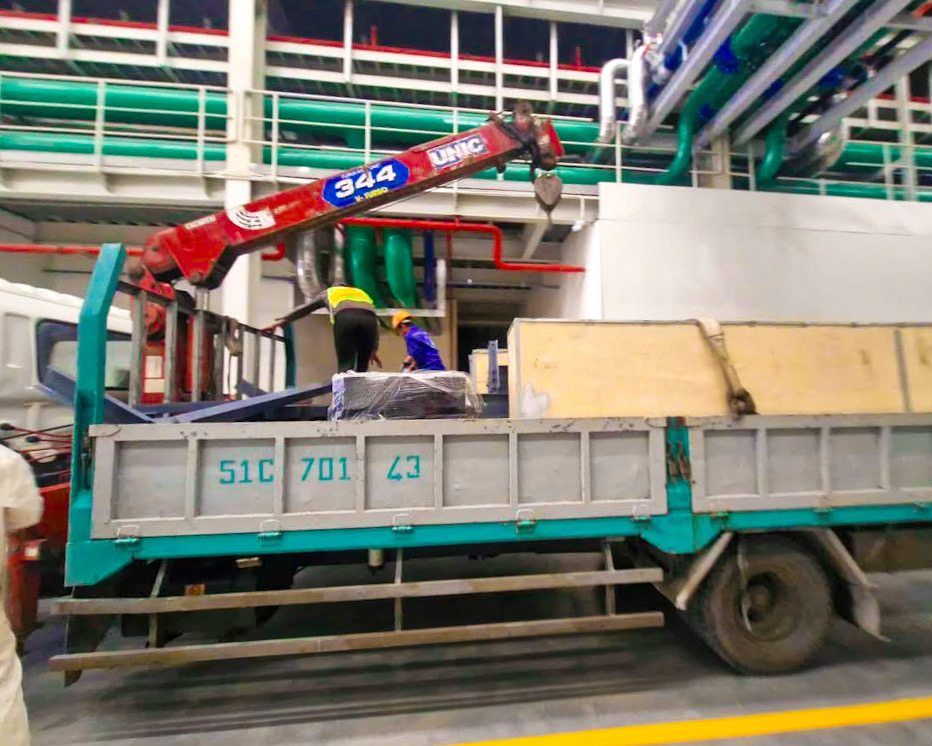 Toàn bộ thiết bị thang máy tải hàng 2.500kg được Hưng Thịnh Phát tổ chức vận chuyển và tập kết tại nhà máy theo đúng quy trình kỹ thuật: