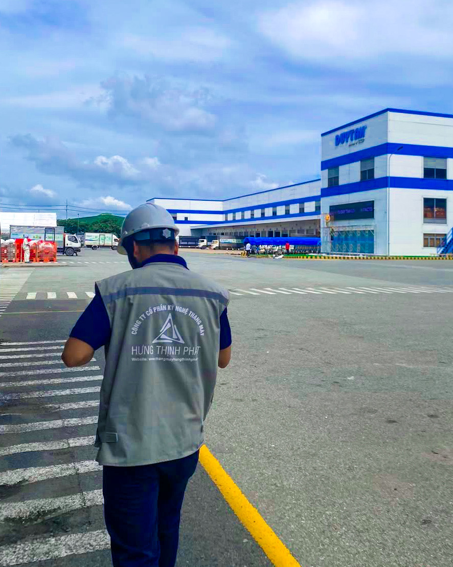 Ngay từ giai đoạn khảo sát thực tế, đội ngũ kỹ sư của Hưng Thịnh Phát đã trực tiếp làm việc tại công trình, đánh giá chi tiết các yếu tố: kết cấu nhà xưởng, lưu lượng vận chuyển, đặc thù hàng hóa, tần suất sử dụng và yêu cầu an toàn.